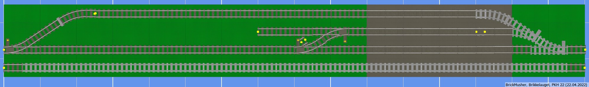 Jeg har en fire spors lokstall med rette skinner i størrelsen bredde 2 baseplater og i lengden 3 baseplater.