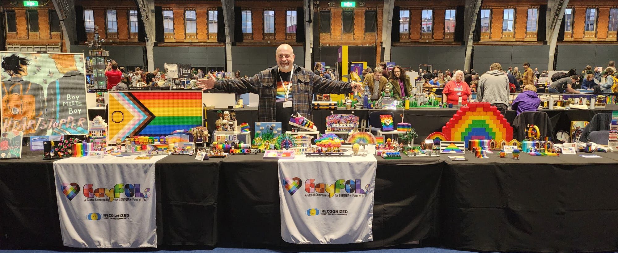 Under BrickTastic i Manchester i februar inviterte Ian Kimpton alle som hadde lyst til å ta med en liten eller stor Pride-inspirert kreasjon til et felles-bord. Han endte opp med rundt 45 forskjellige store og små ting, noen lekne og enkle, andre ganske politiske.