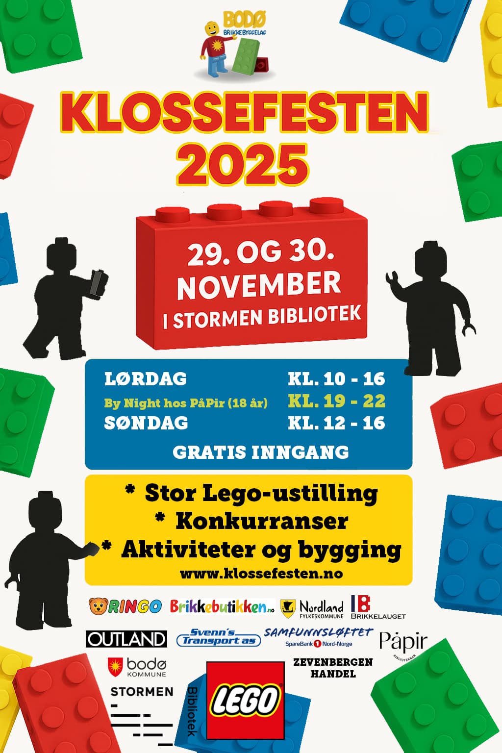 Vi ønsker hjertelig velkommen til årets Klossefesten i Bodø. Dersom du vil stille ut noe, eller ønsker å være med og hjelpe til med organiseringen kan du melde deg på her. Vi har også et kveldsarrangement, og der kan du få middag om du er rask til å registrere deg. Velkommen! Registrer deg her https://registrering.klossefesten.no/