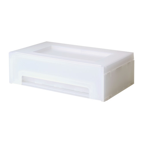 Hver skuff til disse er64x91x154mm (HxWxD). Også her følger det med noen skillevegger, og flere kan kjøpes sepparat.