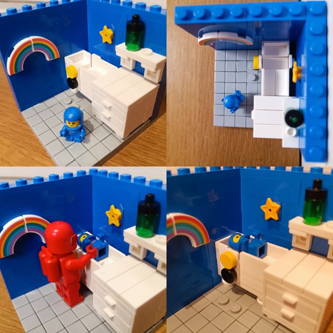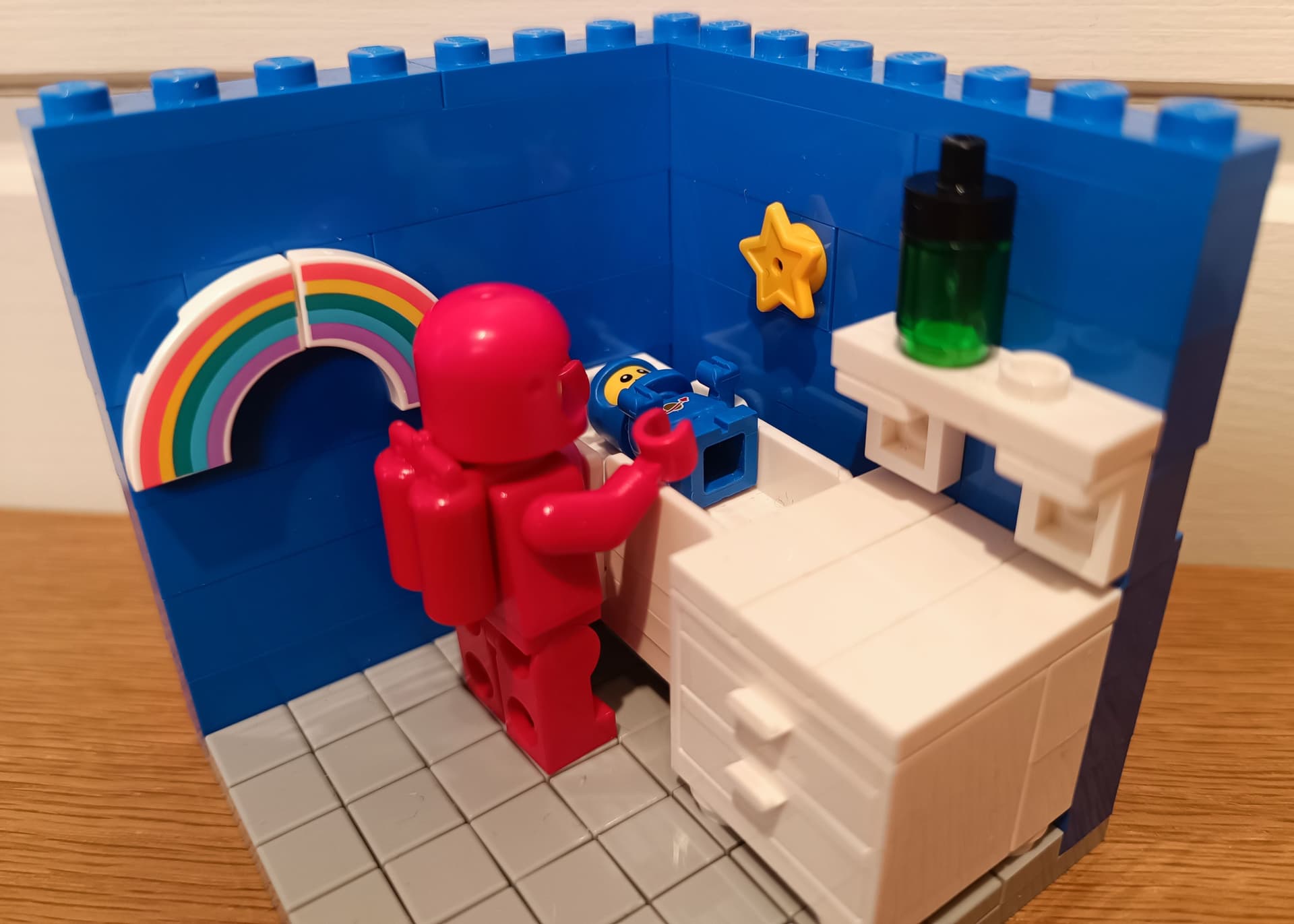 Spacepappa tuller med Spacebaby i senga